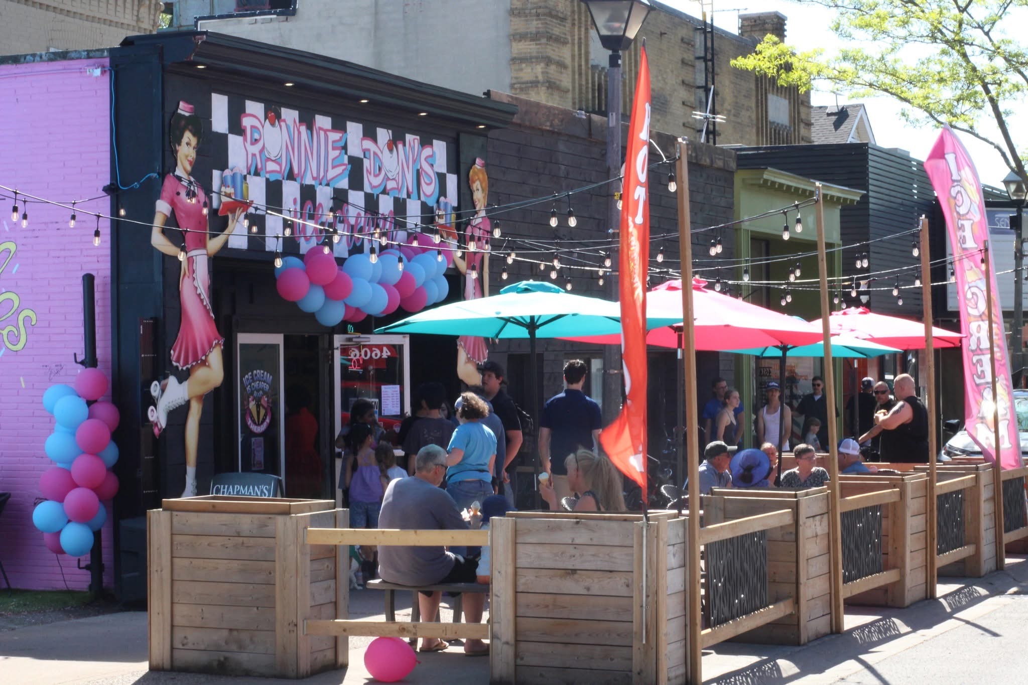 Step back in time and cool off with a sweet treat at Ronnie Don’s Ice Cream, a family-owned 1950s-themed ice cream shop in the heart of Niagara Falls! Located on vibrant Queen Street, our cozy shop features patio seating and a nostalgic vibe perfect for the whole family — including your furry friends!